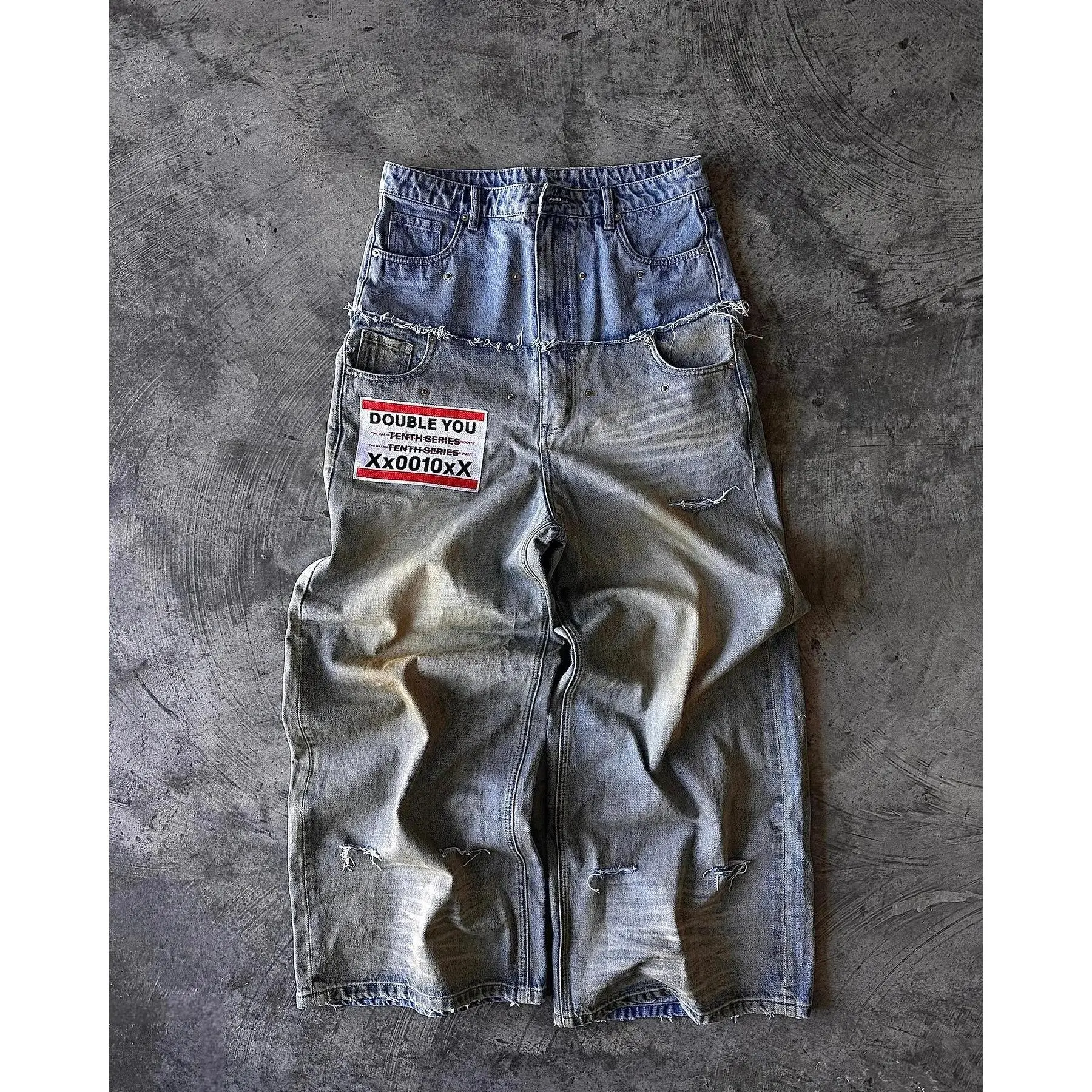 American Retro Double Stitching Washed Baggy Jeans Men’s Y2K New Harajuku Hip-Hop Gothic Casual Joker Wide Trousers Street Wear