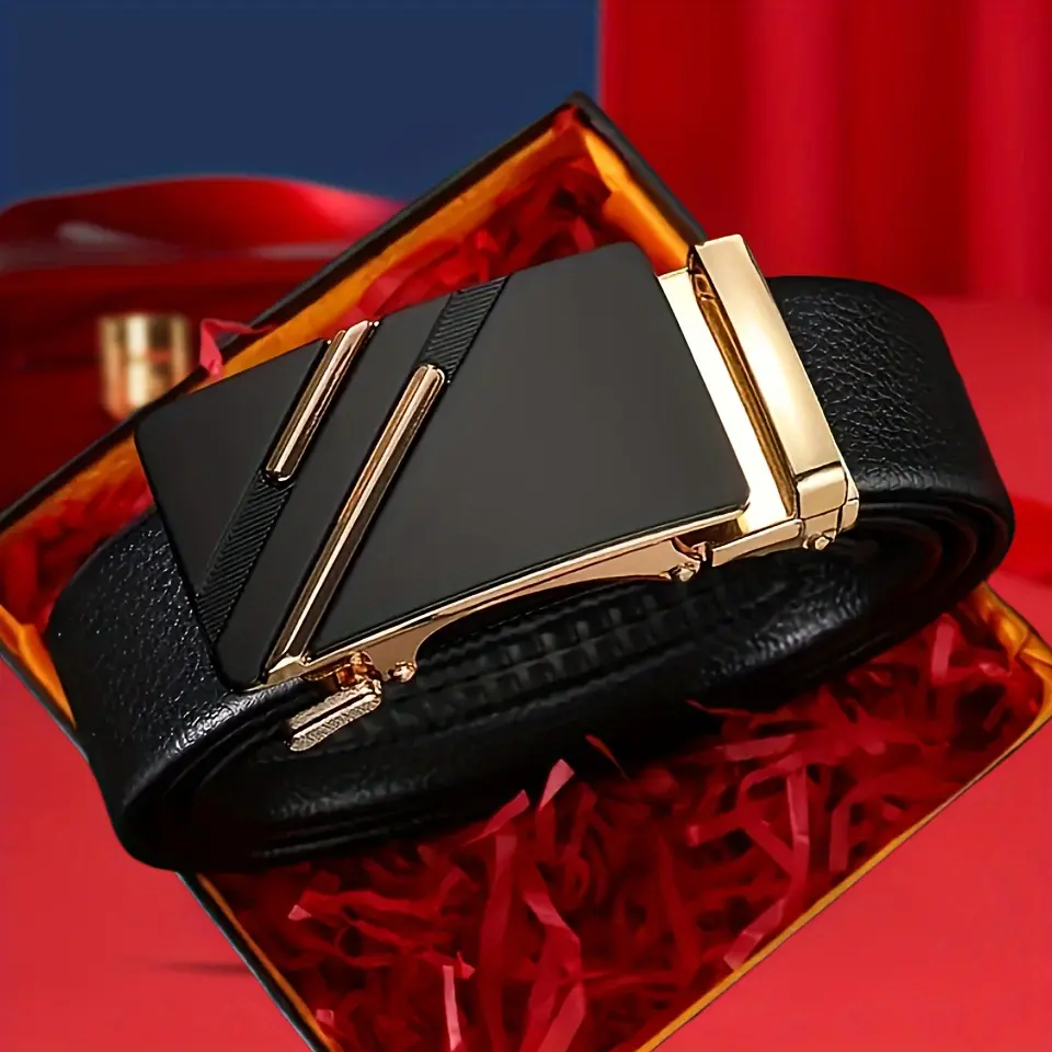 Automatic Buckle Men’s Business Casual Belt – Double-bar Lychee Pattern, Freely Trimmed, Ideal Holiday Gift