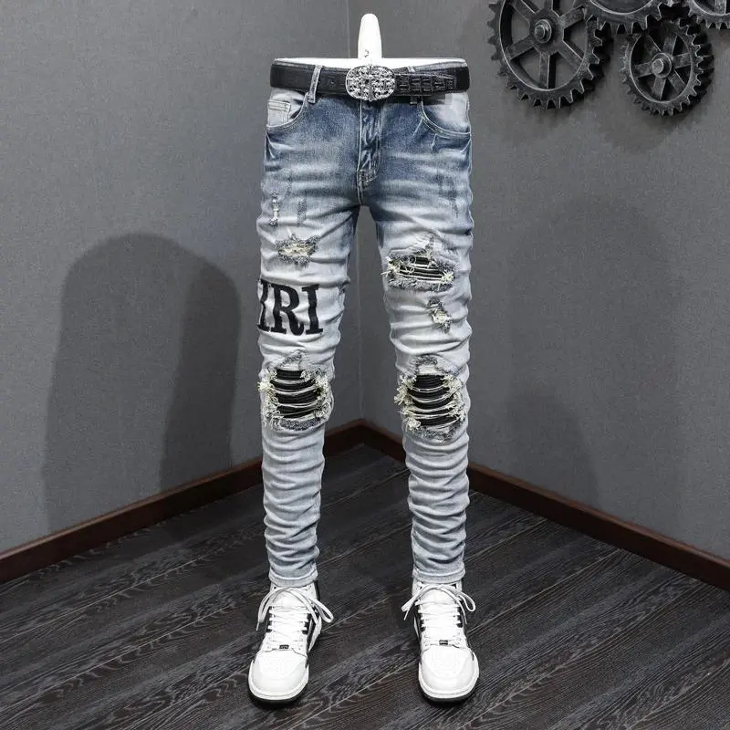 Be the first to review “[]Designer High Street Fashion Men’s Blue Jeans Stretch Tight Washed Letter Jeans Patchwork Hip Hop Style Embroidered Pants(Raincoats)” Cancel reply