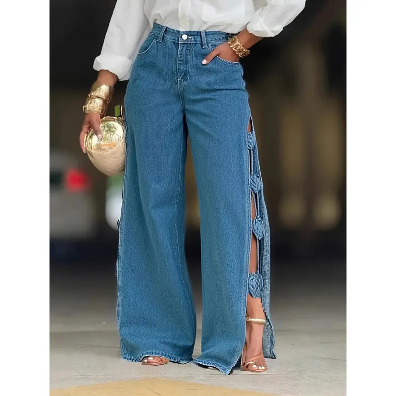 Hollow Out Split Handmade Three-Dimensional Flower Women’s Jeans Halloween Clothes Womenswear wear High-Waisted Slim Straight Jeans women corduroy Gingham Print Straight Leg Waist Ruffle Cargo Capris Contrast Trim Button Flare free wide pants summer