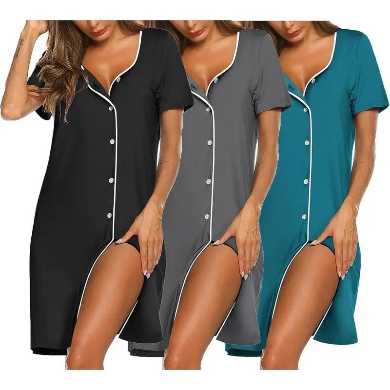 Nightgowns for Women 3 Pack Shirts Button Down Pajama Dress Short Sleeve Nightshirt Sleepwear Nightdress Loungewear Soft Womenswear night gown women Homewear Casual Pjs Shortsleeve Bra Fabric Loose Fashion