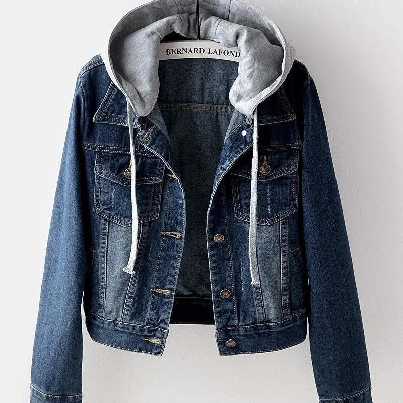 Spring and Autumn Short Slim Hooded Jacket Casual Fashion Denim Jacket Blue Coats