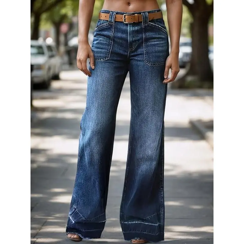 The New Trend Of 2025 Casual Wide-leg Jeans, Women’S Mid-waist Flares With Pockets, Are A Long Design Of Pants For All Seasons Style Womenswear