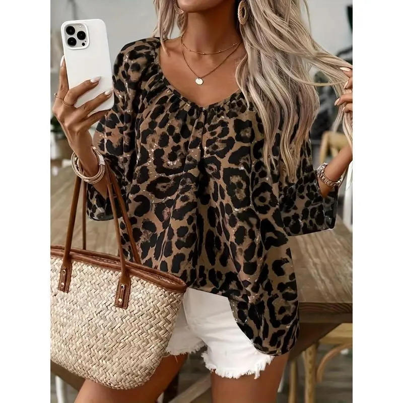 Be the first to review “Women’S Leopard Print V-Neck Blouse – Stylish Ruched Pullover with Long Sleeves, Brown & Black Animal Pattern, Casual Spring/Fall Top for Casual Attire, Leopard Print Blous Shirts Womenswear” Cancel reply