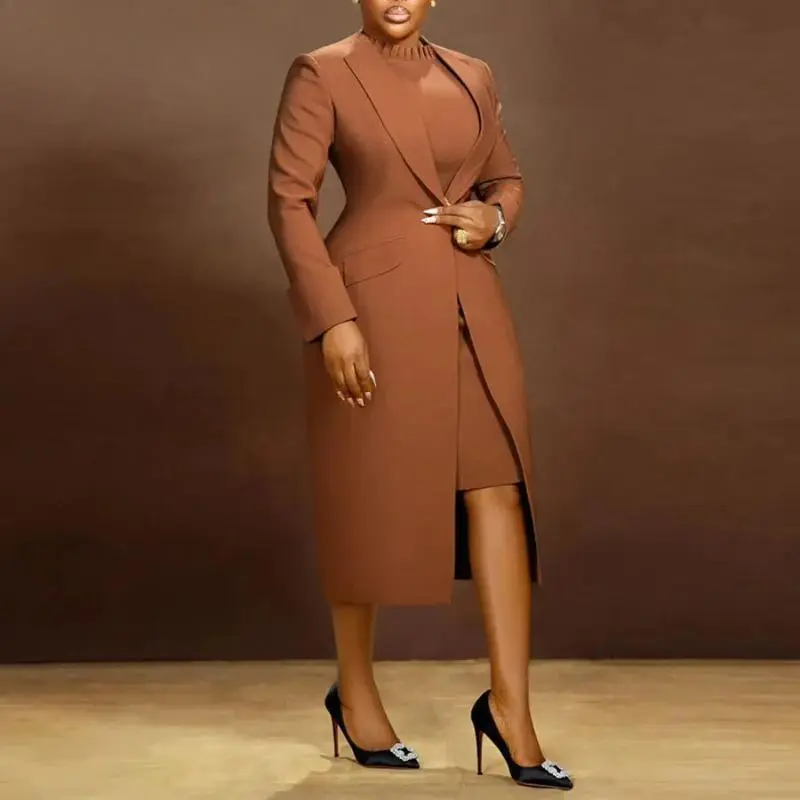 Women’s Set Full Sleeve Long Blazer Coat+ Long Dress Suit 2025 Winter Streetwear Two 2 Piece Set Africa OL Work Outfits